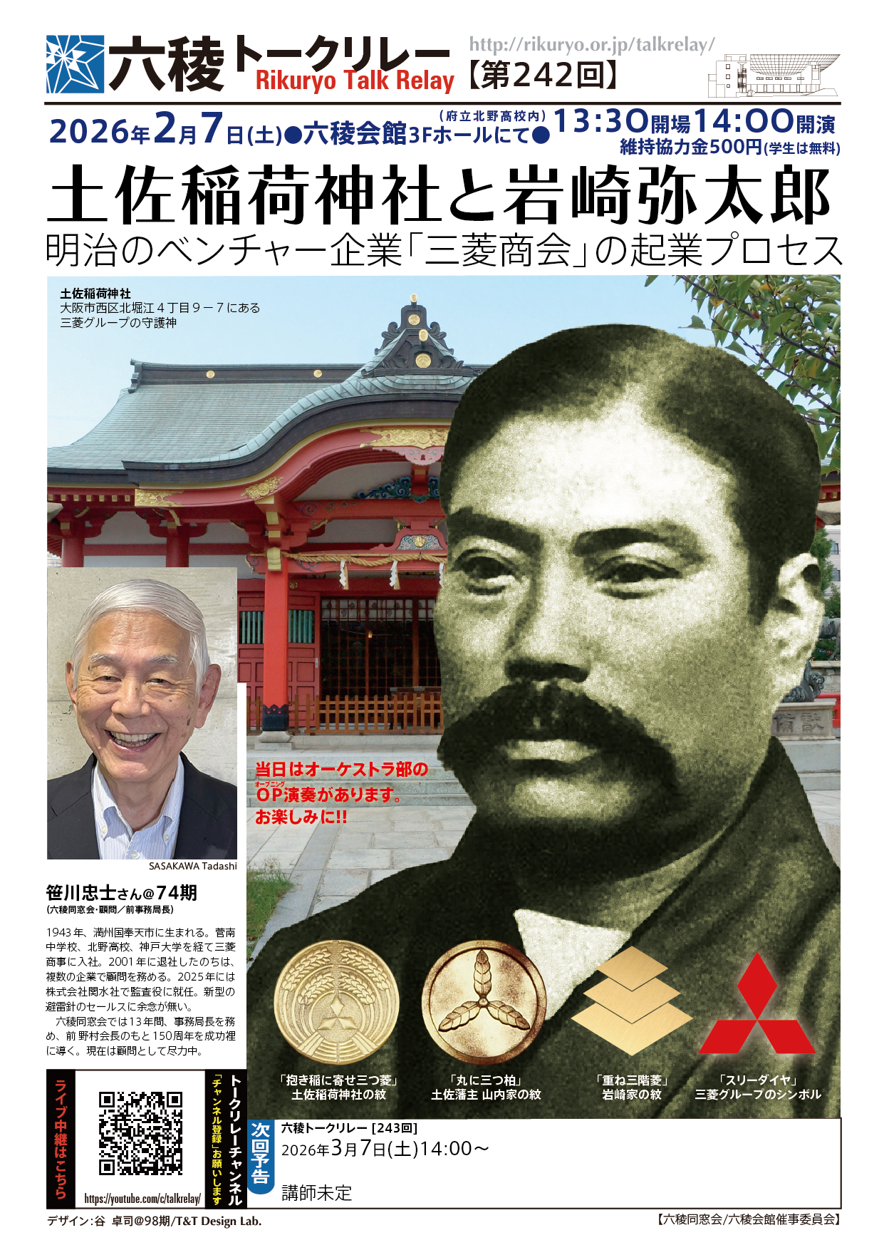 主催:六稜会館催事委員会 共催:各期同期会 or クラブOB/OG会 等 後援:大阪府立北野高等学校 |