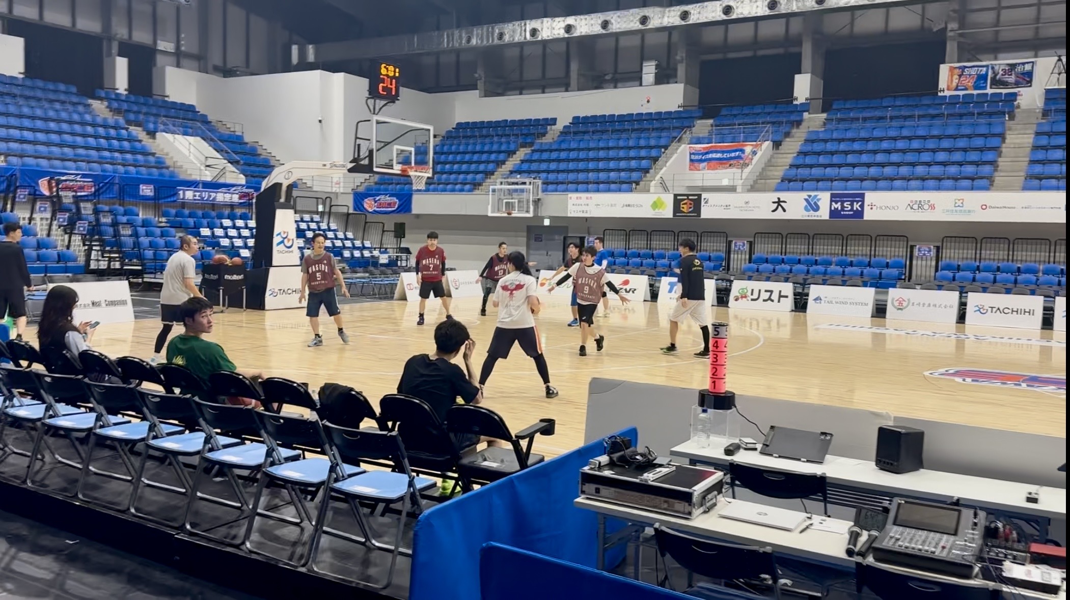 Bリーグの試合観戦の方が総勢約40名、内練習試合には30名もの方がご参加下さいました。他にも天王寺高校OBの方の知り合いに、立川ダイスの選手の後輩に当たる方がおられたり、たまたま今回の対戦相手だったチーム(「ヴィアティン三重」)のヘッドコーチがご自身の中学時代の後輩に当たるという方がおられたりと、不思議な繋がりも発見されるなど、いろんな形でとても盛り上がった会となりました。(^。^)