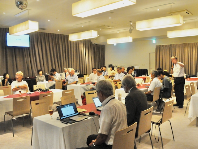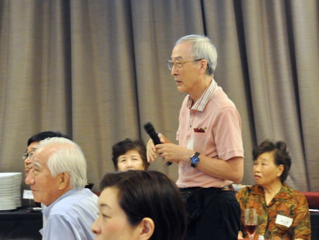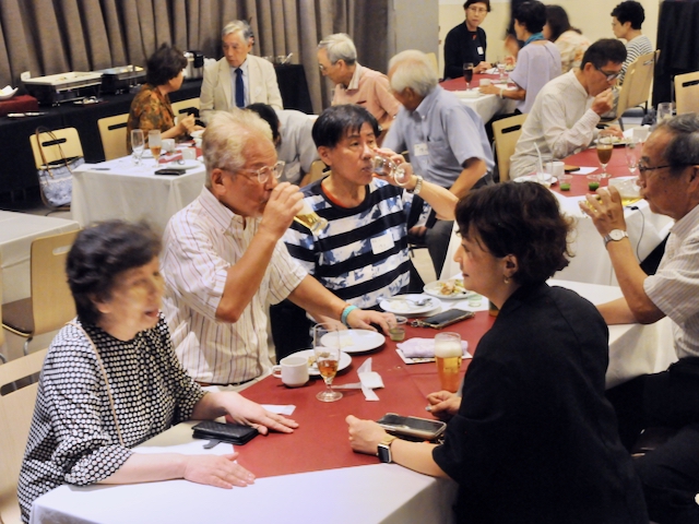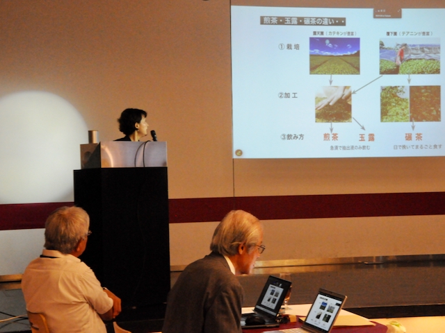 多賀正義さん(76期) Q:お茶は作り方により色々な製品に変わると認識している。タイや中国でも同じ品質の茶葉を作れるのか? A:茶の木自体は一緒で、茶葉の発酵度合いにより紅茶・烏龍茶・緑茶に分かれる。その内、緑茶は、覆下園(茶木に覆いをかけて栽培)で碾茶(抹茶)・玉露が作られ、露天園で煎茶・ほうじ茶・玄米茶が作られる。露天園は太陽の光によりカテキンが豊富で苦みが出るが、覆下園はテアニンが残りうまみ成分が豊富。中国政府は、お茶はもともと中国から日本に輸出したものでお茶文化のオリジンは中国、ということでお茶市場に攻勢をかけている。中国のお茶は、その圧倒的な土地の広さと人の多さで価格が安い。現在は中国国内の需要内で収まっているが、後2~3年後に海外市場がどうなるか分からない。中国のお茶は露天園で、カテキンは豊富だが苦みが強くうまみが少ない。CUZEN MACTHAは、覆下園の高級抹茶に含まれるテアニンの健康貢献とうまみを消費者にアピールしていく。