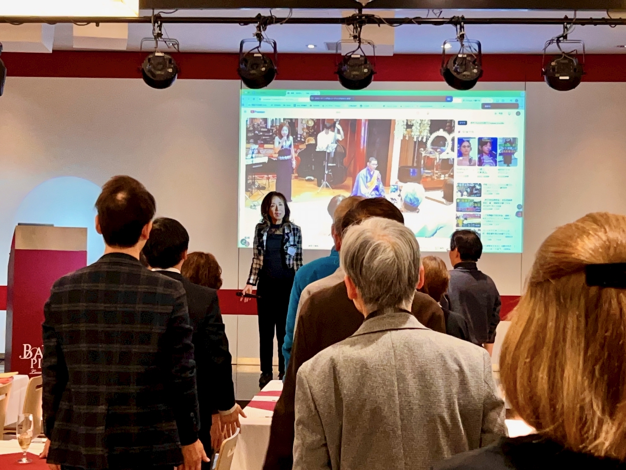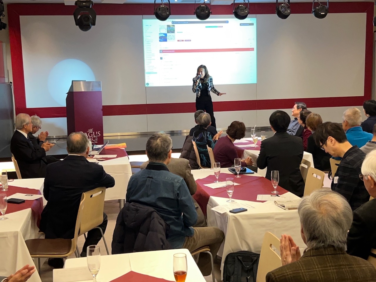 | Ⅶ.講演概要 | *紹介者は造力全史さん(91期)吉田昌代さんは、北野高校卒業生としては、あまりいないジャズ・ポップスのシンガーソングライター。食べることや食品に興味があり、神戸大学農芸化学科に進学され、在学中にプロジャズシンガー活動を開始。英語もままならないまま(ご本人曰く)、全額奨学金で名門バークリー音楽大学へ。ご苦労が多かったと思うが、ボストン、サンフランシスコで22年間音楽活動を続けられ、そのままアメリカに滞在されると思いきや、故あって、2012年にご帰国。現在、大阪にお住まいで、本日は大寒波襲来の中、朝早くから新幹線で東京に来て頂いた。事前に、高校の同期女性陣に当時の吉田さんの印象を聞いたところ、ある方は、アニメに出てきそうな可愛い女性、また、別の方は、同い年なのにお姉さんのようで、男子生徒の憧れの的だった、とのコメントを頂いた。本日は、どういうご縁でシンガーソングライターになられ、どうしてアメリカに渡られたのか、アメリカでの生活ぶりやどのようなご苦労をされたのか、分かっているようで、実は分からないジャズとはどういうものかを分かりやすく教えて頂けると伺っている。また、時間があればヴォイストレーニングを行って頂けるとのことで、吉田さんのご講演を最後まで楽しんで頂ければ幸いです。