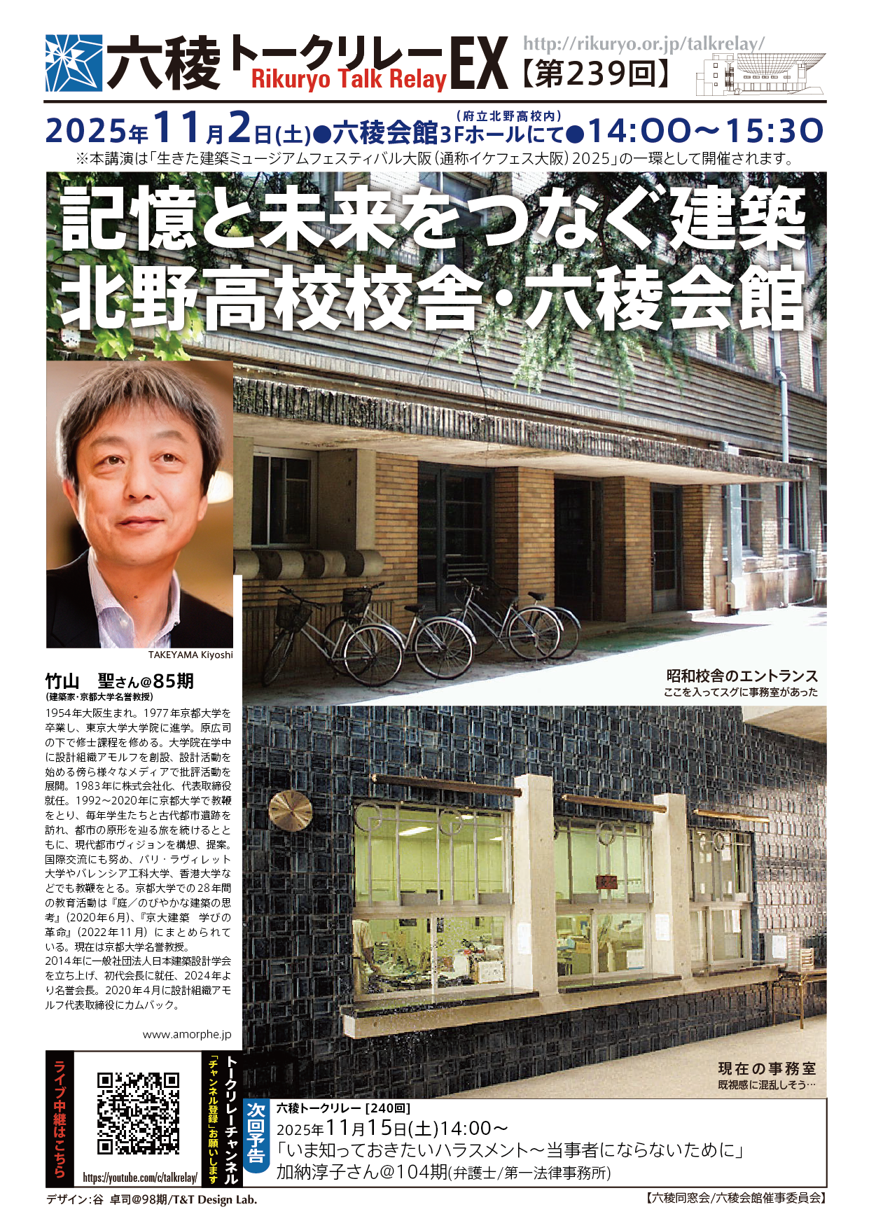 主催:六稜会館催事委員会 共催:各期同期会 or クラブOB/OG会 等 後援:大阪府立北野高等学校 |